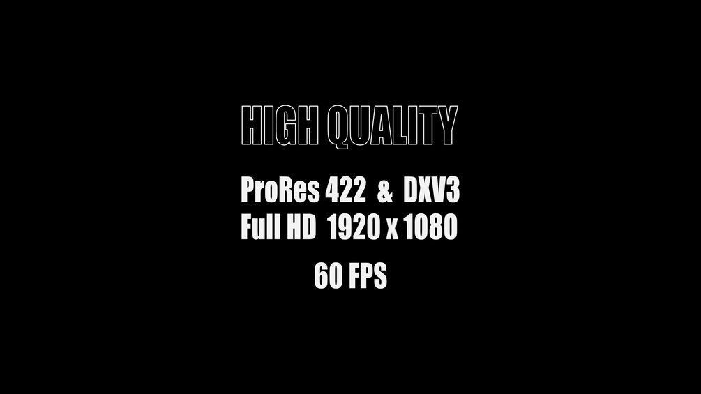 40 loops. Full HD 1920 x 1080 at 60 fps, smooth playback even at 50% speed! Available in (original) PRORES 422 10-bit or (transcoded) DXV3 normal quality, no alpha. Make your choice! Durations: 2-4-8-16-32 seconds. Most clips are 4 or 8 sec. Made with Davinci Resolve / Fusion.